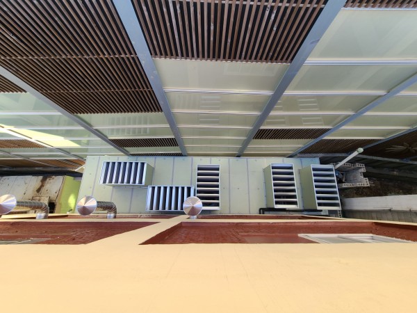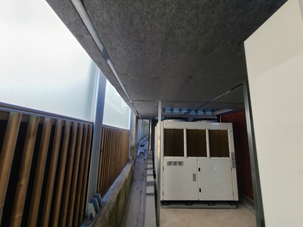 인접한 아파트에 소음을 방지하기 위해 실외기에 덕트소음기 설치 공사를 하였다.
