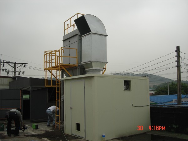 내 용 : 송학식품 옥상 송풍기에서 발생하는 소음이 인근 업체에 영향을 주고있어 이에 방음박스를 씌우고 소음기를 제작,설치하여 송풍기에서 발생하는 소음을 개선하였다.