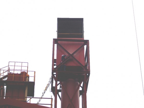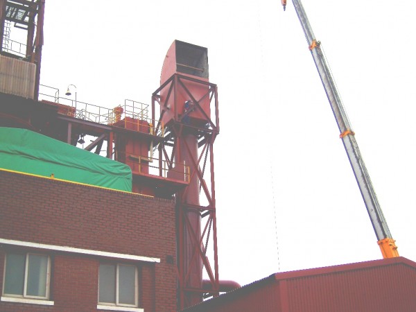 내 용 : 설비 가동시 기존에 있던 소음기가 압력손실이 발생하여 압력손실을 줄이고, 토출구로 나오는 소음을 저감토록 설계 후, 녹방지를 위하여 FRP로 소음기를 제작하여 설치하였다.