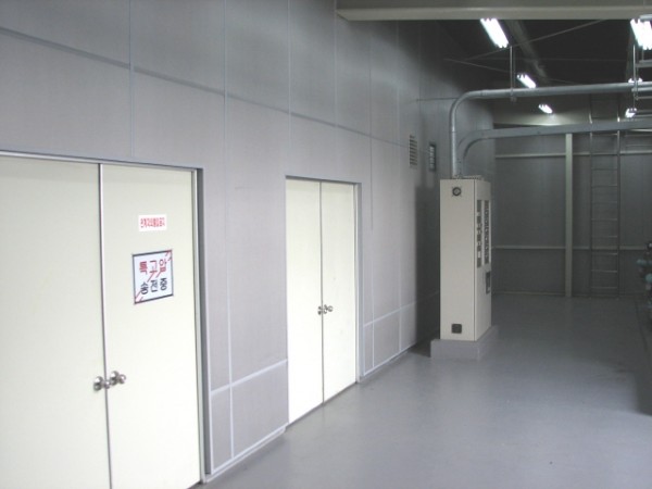 내 용 : 기계실에서 발생되는 소음으로 인하여 회의실에 피해가 있어서 기계실 내부에 벽, 천정을 차음시트와 불연성 흡음보드(wd-202g, 50t)를 설치하여 방음하였다.