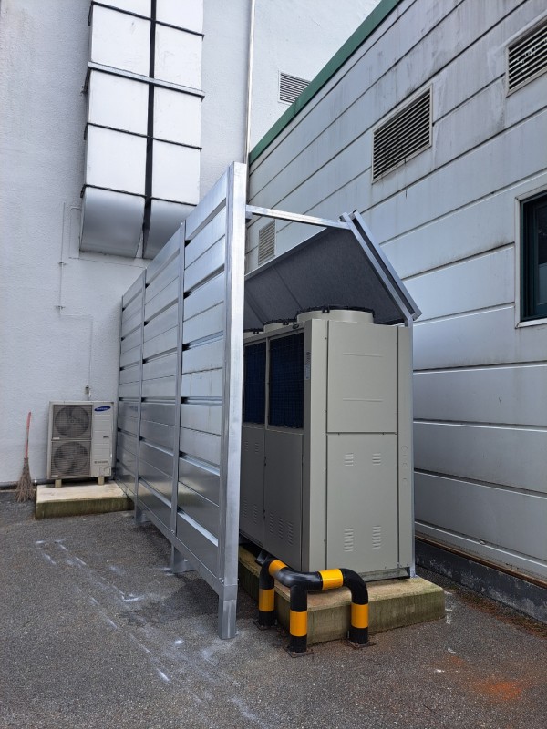 충북 충주에 소재한 신일제약 공장내 폐수처리장 및 실외기 소음으로 인하여 주변 민가에서 민원이 야기되어 방음벽 및 건물 외벽에 흡음판을 설치하여