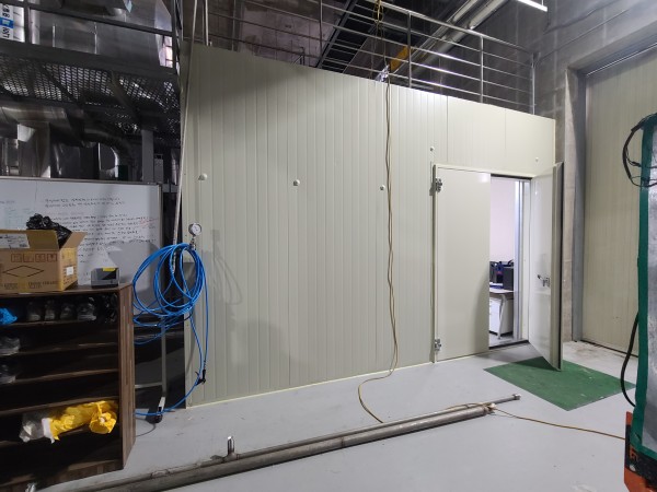 기계실 냉동기계에서 발생하는 소음으로 인해 사무실 내부/외부에 판넬 및 흡음공사를 하여 근무환경을 개선하였다.