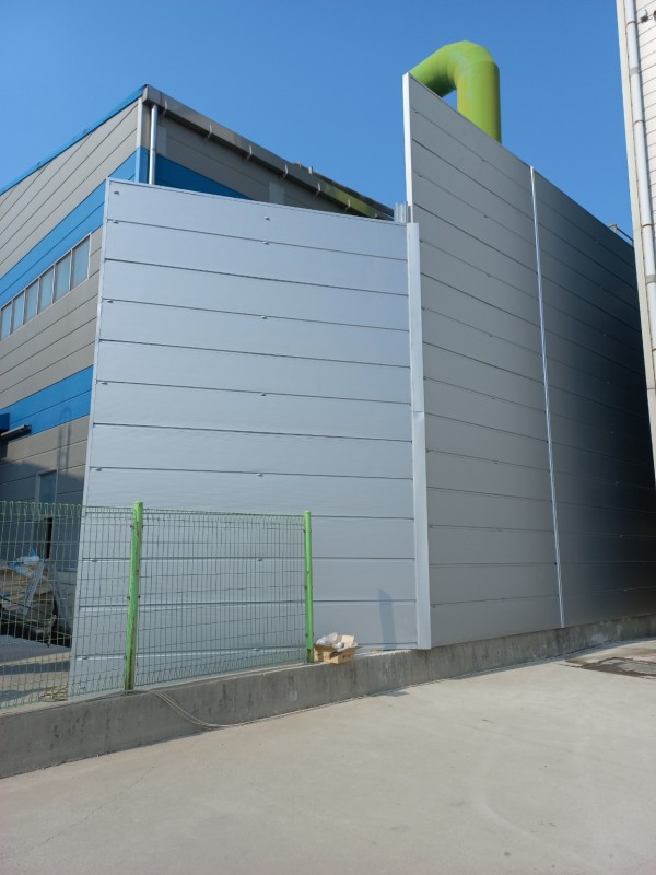 공장 소음때문에 인접 기숙사에 소음피해가 발생하여 방음벽을 설치하여 민원을 해결하였다.