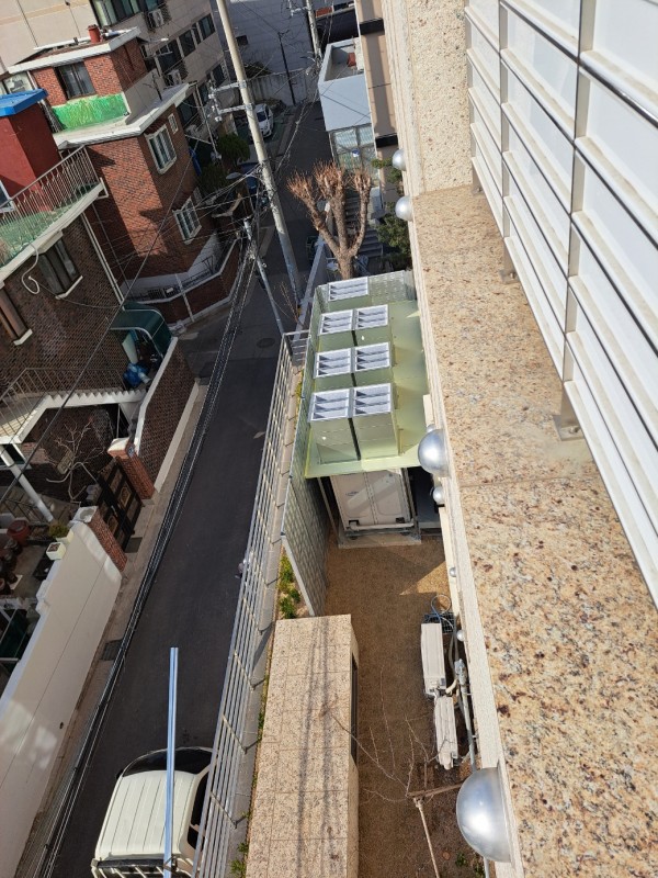 실외기 소음으로 인해 인접빌라에 소음피해가 발생하여 1층소음덕트, 옥상방음벽을 제작 설치 하여 민원을 해결하였다.