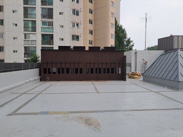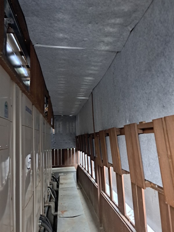 옥상 실외기로 인한 소음때문에 실외기 방음공사를 하여 인접 아파트에 민원을 해결하였다.