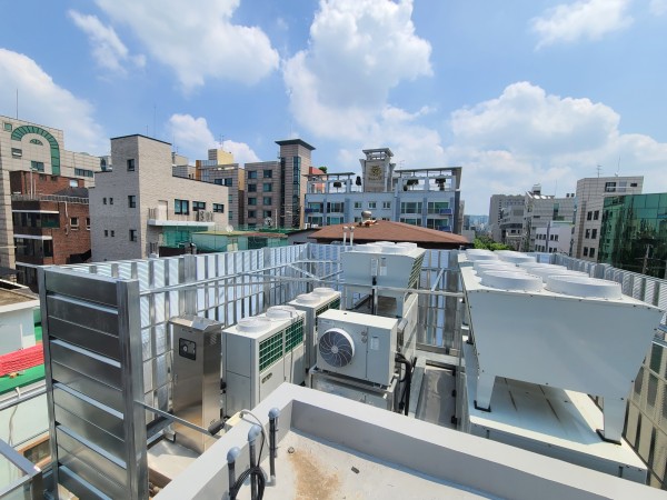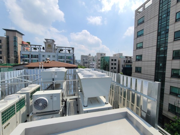 옥상에 설치된 실외기 때문에 인접빌라에 소음이 발생하여 방음벽을 제작, 설치 하였다.