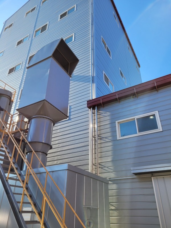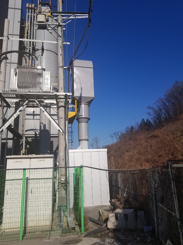 외부에 설치된 집진기(2개소) 토출구 소음으로 인근 사업장에서 소음피해가 발생하여 레듀샤, 소음기, 방향후드를 설치하여 20~25dB(A)정도 소음을 감소시켜서 민원을 해소하였다.