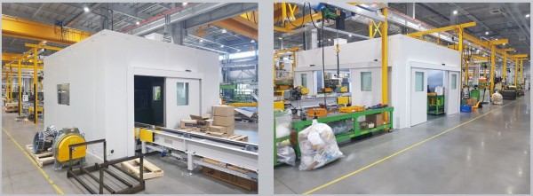 컨베이어 작업을 하는 엘리베이터 부품 테스트를 할 수 있도록 자동문 설치된 방음실(4set)을 설치하였다.