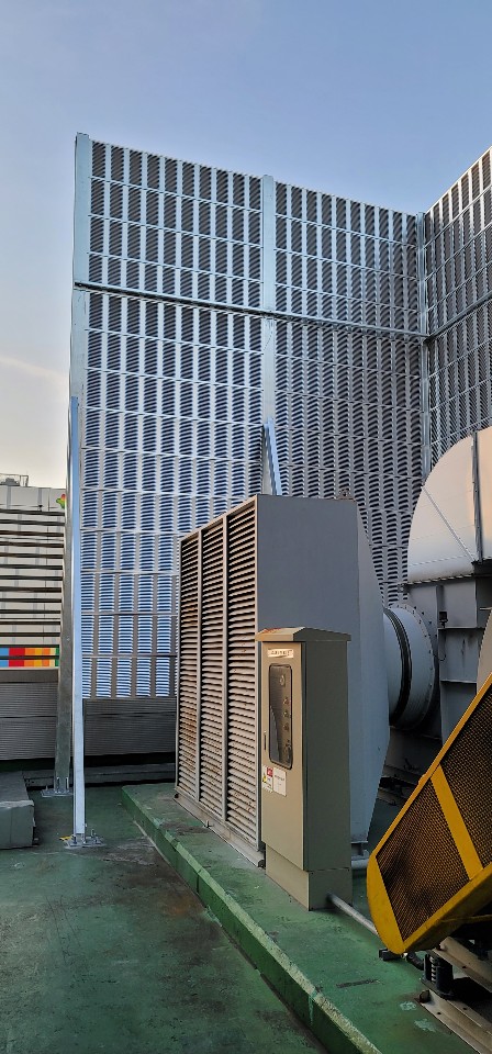 내 용 : 옥상에 각종 기계설비소음으로 인근공장에 민원이 발생해 방음벽(L=40m, H=8m)을 설치해서 민원을 해결함.
