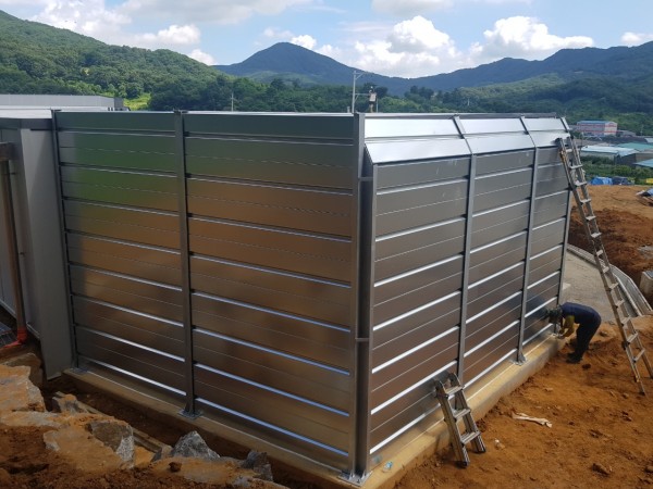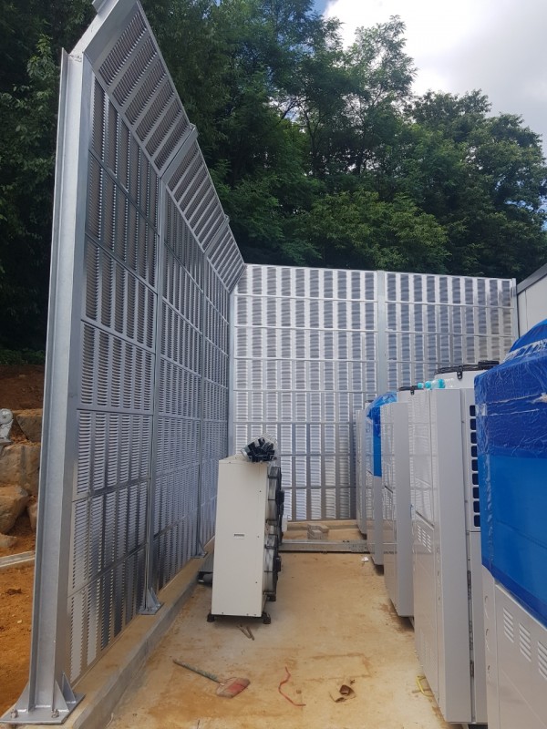 신축 공공급식센터의 외부 실외기가 인접한 요양원에 소음피해가 예상되어 방음벽을 설치하여 피해를 예방하였다.