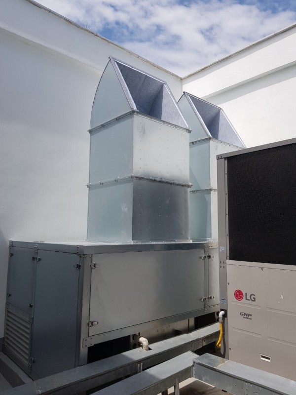 옥상에 설치된 실외기에서 발생한 소음으로 인근아파트에서 민원이 발생하여 방음판, 소음기, 흡음재 설치하여 민원을 해결하였다.