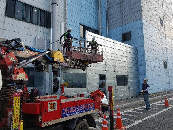 내 용 : 외부 PROCESS AIR BLOWER 가동시 발생되는 소음을 감소시키기 위해 방음벽 제작 및 설치하여 환경을 개선시킴.