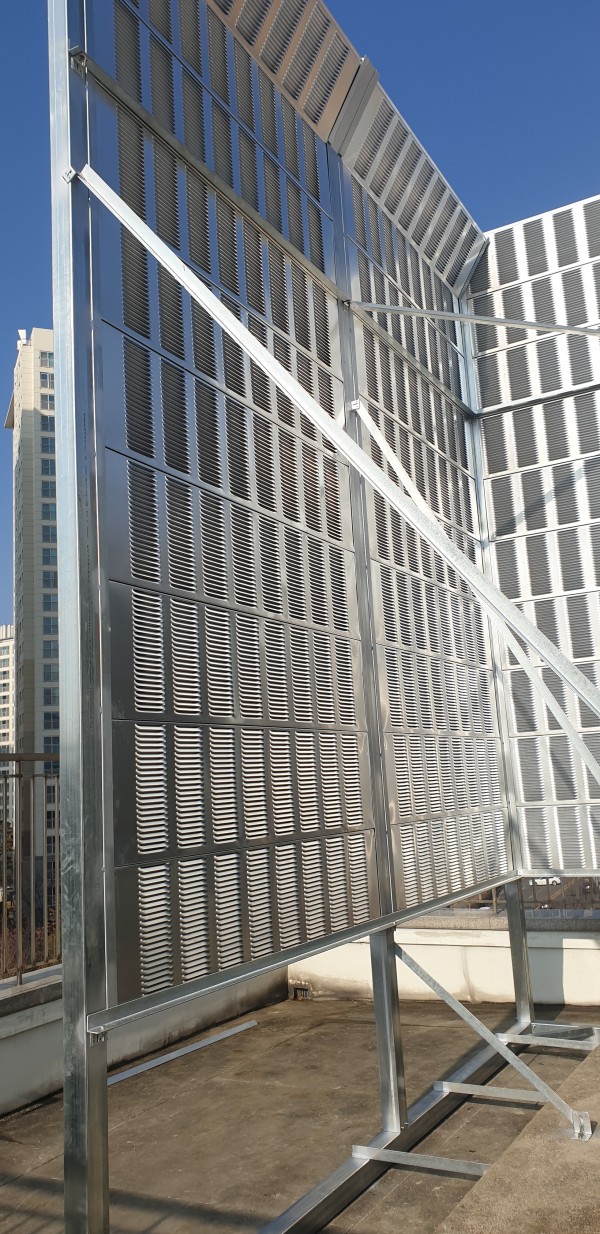 삼송시립도서관 옥상에 있는 냉각탑 소음으로 인한 인근 아파트의 민원을 방음벽을 설치함으로서 해결하였다.