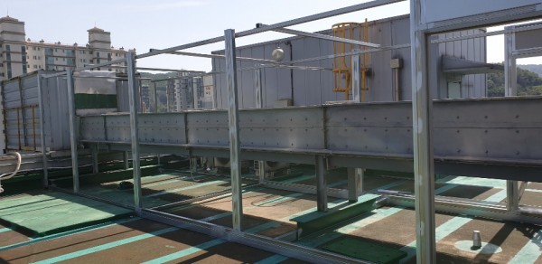 내 용 : 컨베어 소음으로 주변 아파트 민원을 해소하기 위하여 방음커버 제작 및 설치하여 소음을 저감시킴.