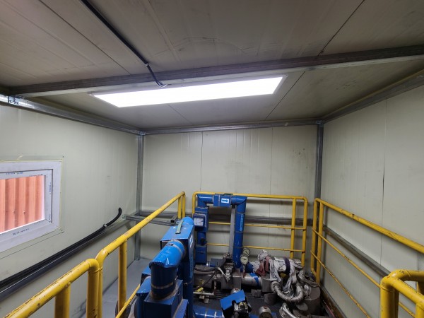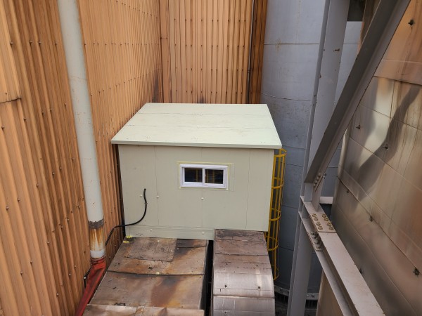 냉각수 분사부 설비기계에 빗물 노출 방지를 위하여 샌드위치판넬로 ROOM 설치 공사를 하였다.