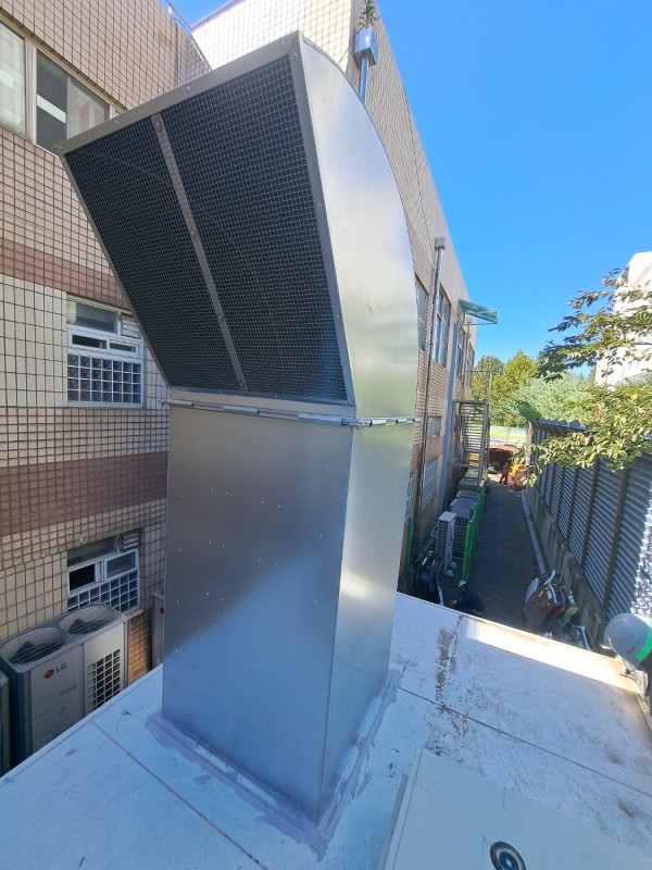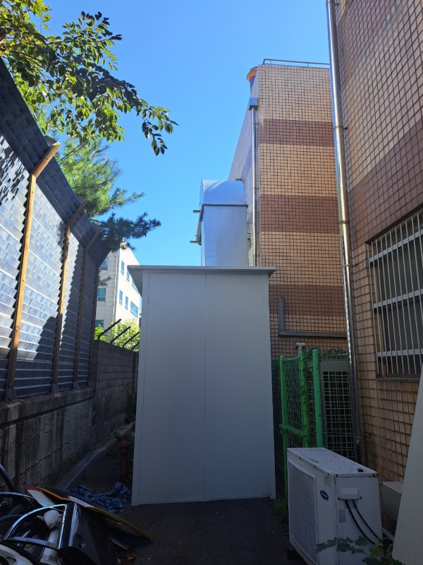 인접한 아파트에 소음피해 민원이 들어와 기존 원형배기구를 철거후 소음기를 제작설치하여 민원을 해소하였다.
